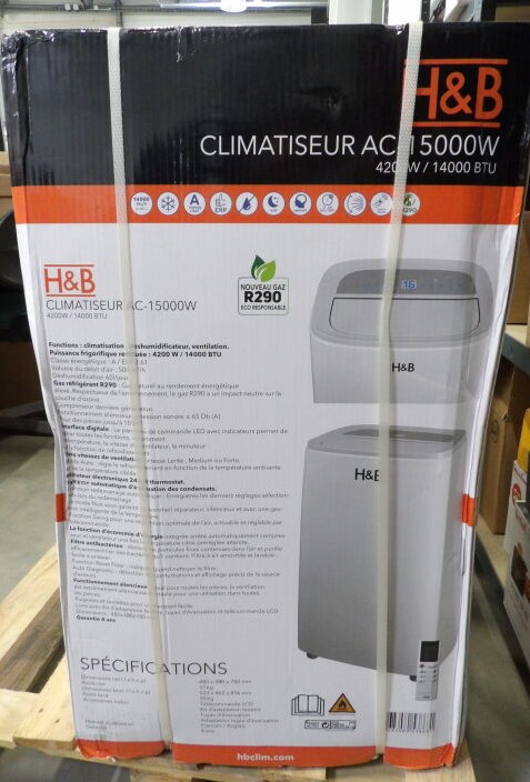 H&B Climatiseur AC-15000W - NEUF scellé (boite abimée) ! Fonctions : climatisation , deshumidificateur, ventilation.