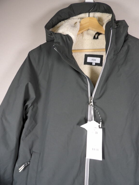 JULES Parka Kaki longue, intérieur faux sherpa beige. NEUVE en taille L.