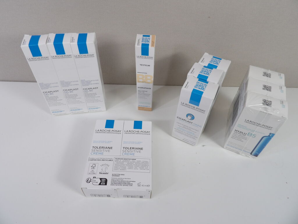 LA ROCHE-POSAY Lot de x12 articles NEUFS : CICAPLAST GEL B5, CICAPLAST MAINS, HYALU B5 SERUM, HYDRAPHASE BB, TOLERIANE CREME.