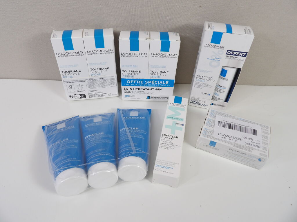 LA ROCHE-POSAY Lot de x12 articles NEUFS : Cicaplast lèvres, Toleriane crème, Effaclar Duo +M, EFFACLAR Masque Sébo-regulateur, Toleriane Dermallergo crème et Toleriane sensitive creme;