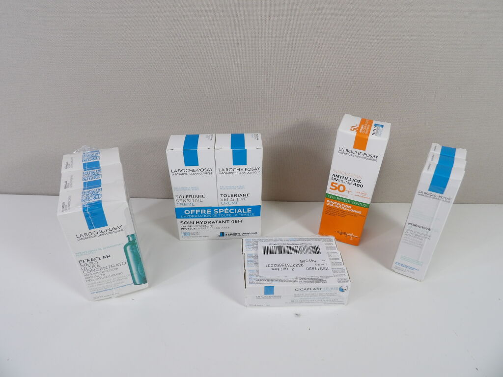 LA ROCHE-POSAY Lot de x12 articles NEUFS : Serums EFFACLAR, CICAPLAST Lèvres, HYDRAPHASE Yeux, TOLERIANE Crème et Gel crème Protection UVA.