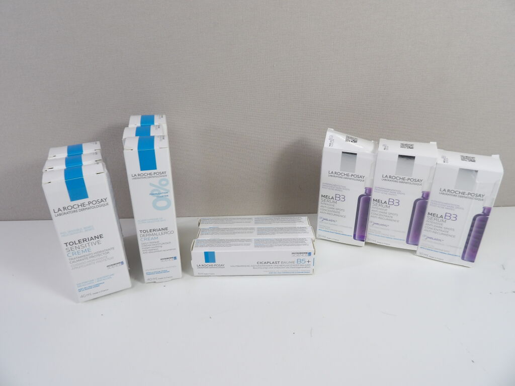LA ROCHE-POSAY Lot de x12 articles NEUFS : x3 TOLERIANE Sensitive creme, x3 CICAPLAST Baume B5+, x3 TOLERIANE DERMALLERGO Cream, x3 MELA B3 Serums.