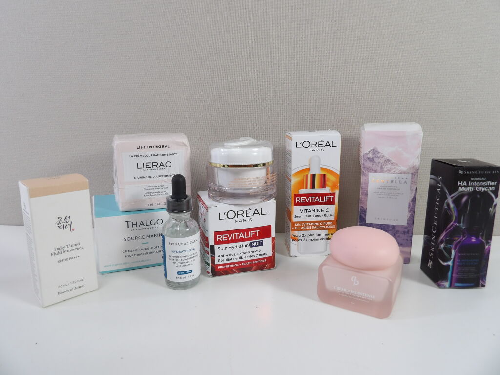 Lot de x10 cosmétiques neufs et occasion : L'Oréal, Centella, Skin Ceuticals, Thalgo ....