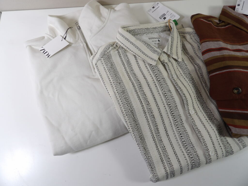MODE HOMME : Lot de x4 articles NEUFS en XL : x3 Chemises BONOBO (Marron manches longues, et les deux autres manches courtes) ainsi qu'un sweat zippé molleton ZARA blanc.