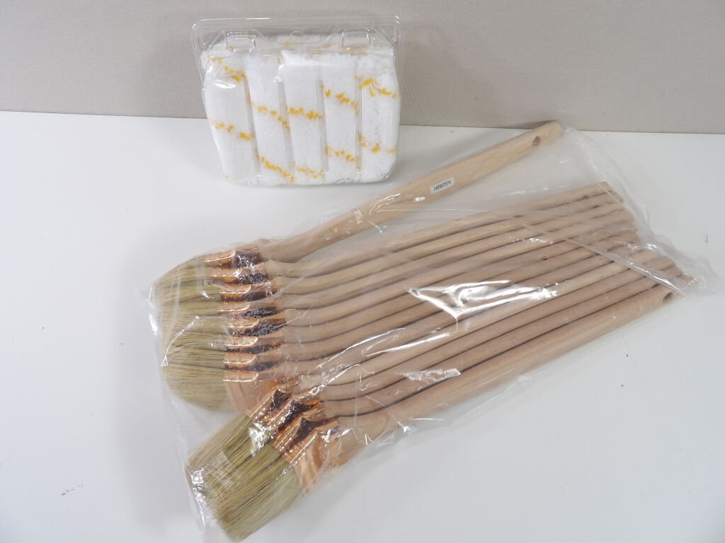 Peinture - Matériel professionnel - Lot x12 pinceaux coudés longs spéciaux radiateurs 40 - Avec x10 rouleaux.