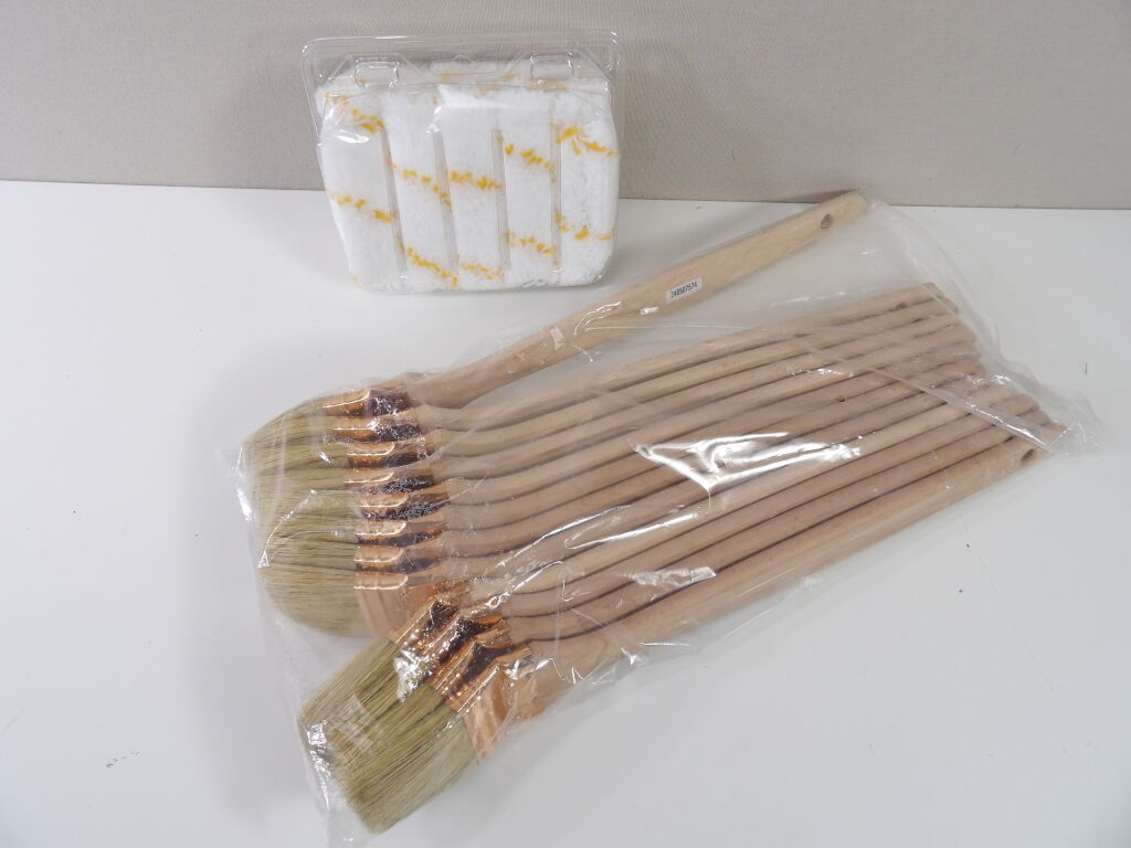 Peinture - Matériel professionnel - Lot x12 pinceaux coudés longs spéciaux radiateurs 40 - Avec x10 rouleaux.