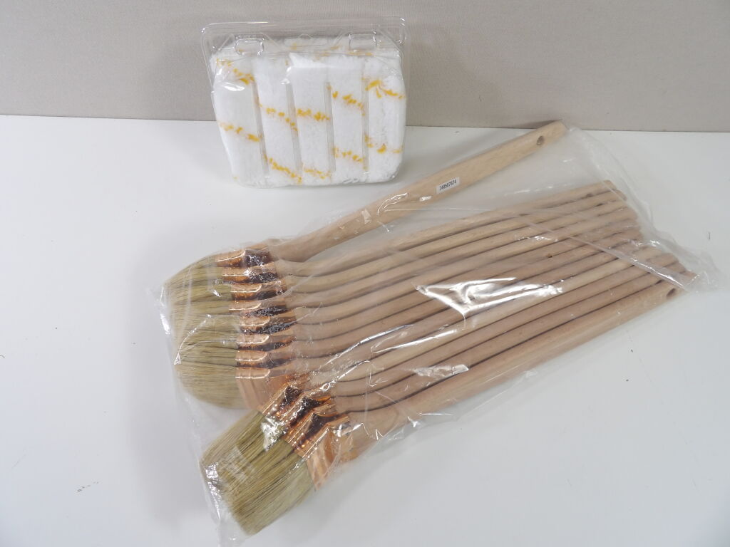 Peinture - Matériel professionnel - Lot x12 pinceaux coudés longs spéciaux radiateurs 40 - Avec x10 rouleaux.