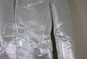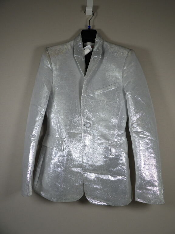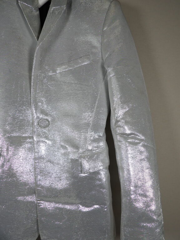 Rabanne x H&M Collaboration : Veste Blazer argentée brillante d'occasion (état correct), en taille 48. Assurez vous un look unique pour le Nouvel An !