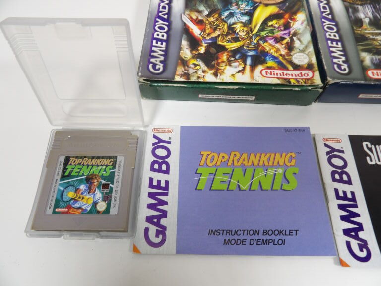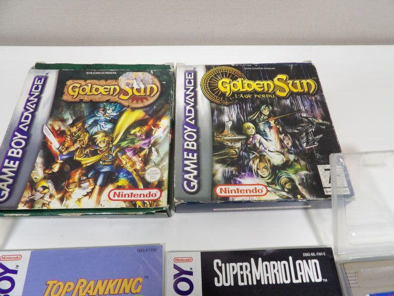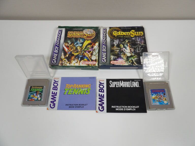 Rétrogaming : 4 jeux dont 2 pour Nintendo Game Boy (Top Ranking Tennis et Super Mario Land) et 2 pour Game Boy Advance (Golden Sun et Golden Sun l'âge perdu)---occasion non testé vendu en l'état---