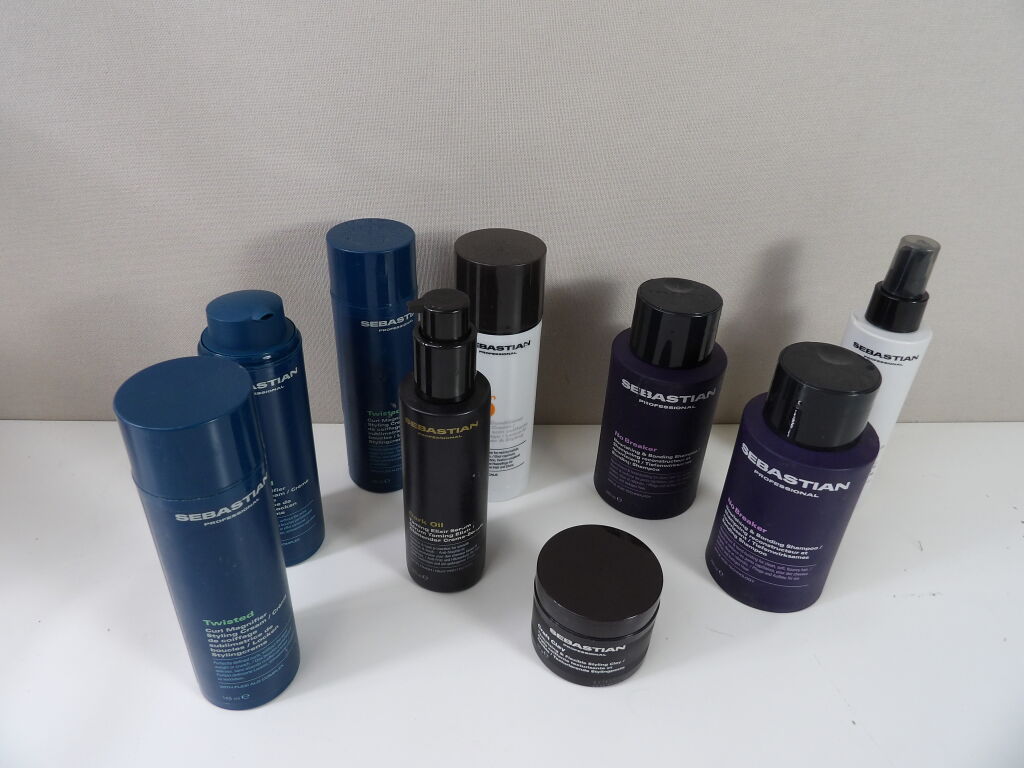 SEBASTIAN - Lot de 9 cosmétiques Neufs et occasion: Crème de soin coiffante, Shampoing, Masque reconstructeur ....