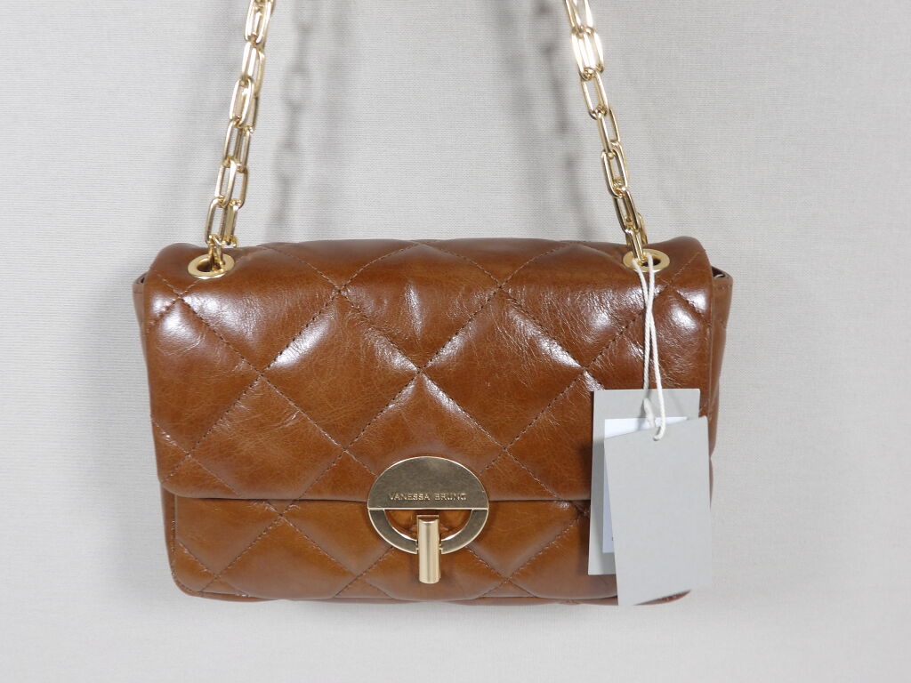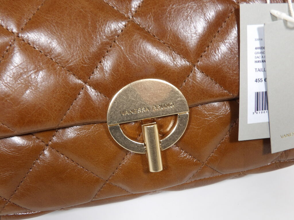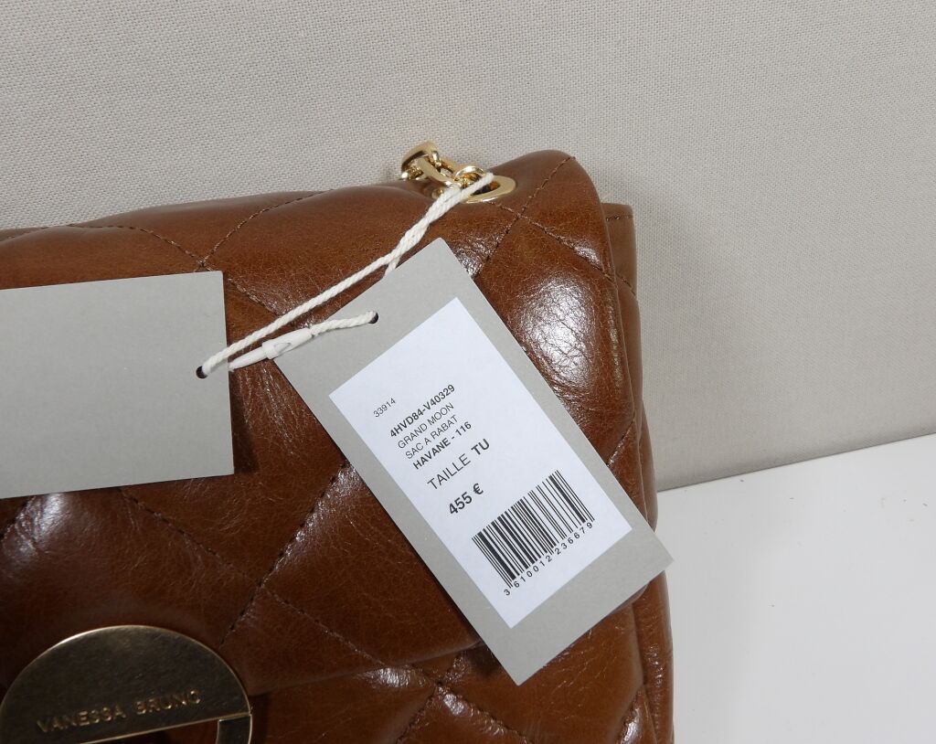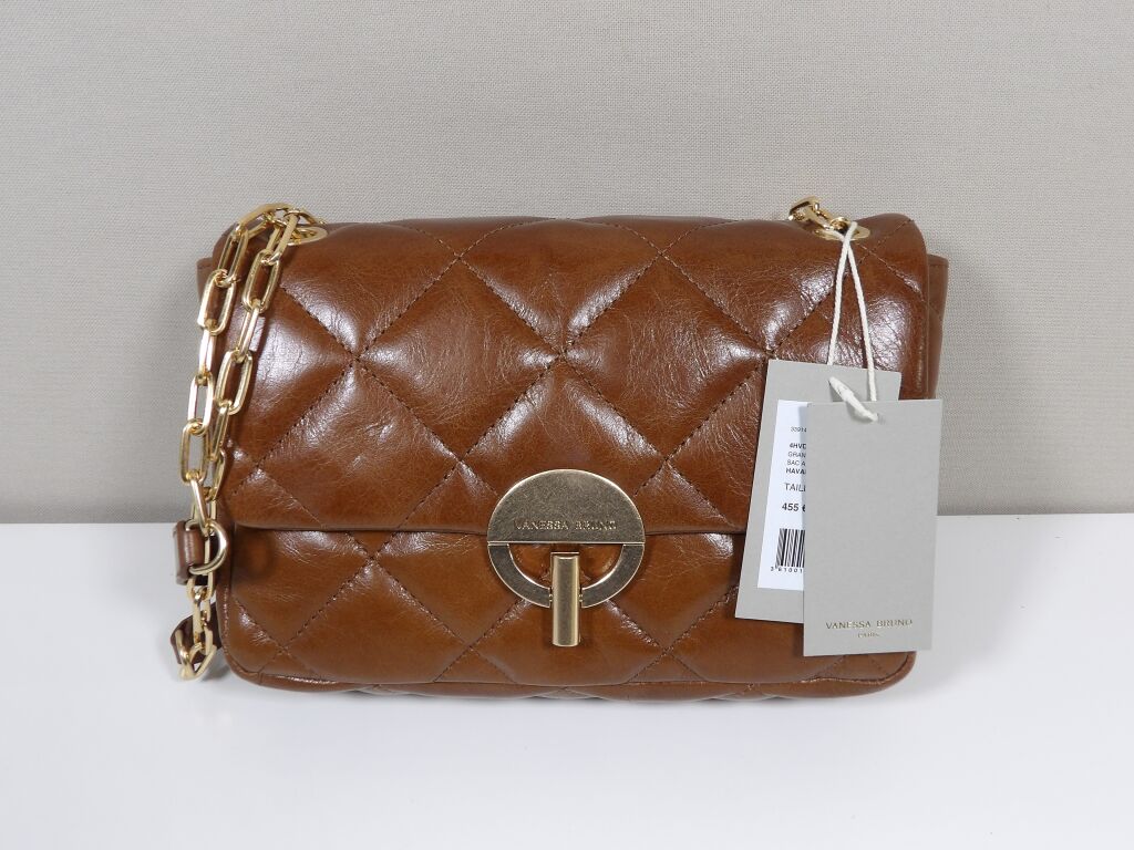 VANESSA BRUNO - Sac à rabats modèle Moon en cuir matelassé coloris Havane - neuf avec étiquette - Valeur 455 euros - Dimensions H 17 x L 27 x P 8 cm