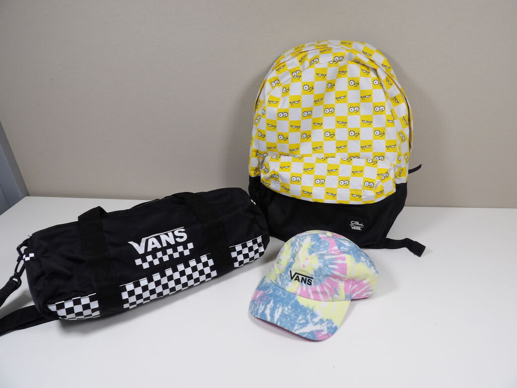 VANS - Lot de 3 articles Occasion en bon état - Sac à dos The simpsons - Casquette multiocolore - Sac baluchon à damiers