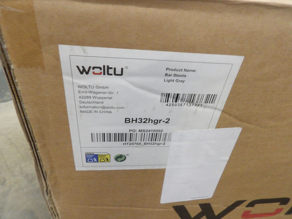 WOLTU - Tabouret de Bar pivotant et réglable en hauteur, assise rembourrée coloris Gris Clair - Neuf à monter