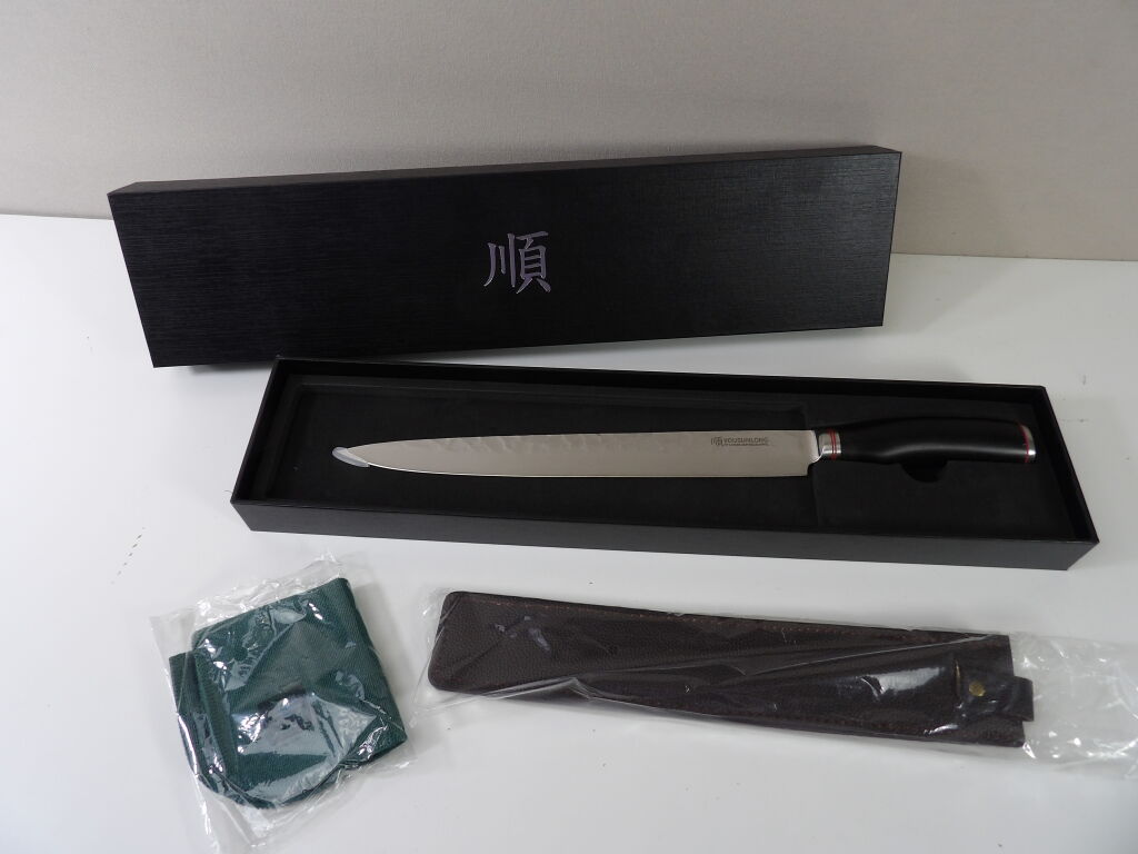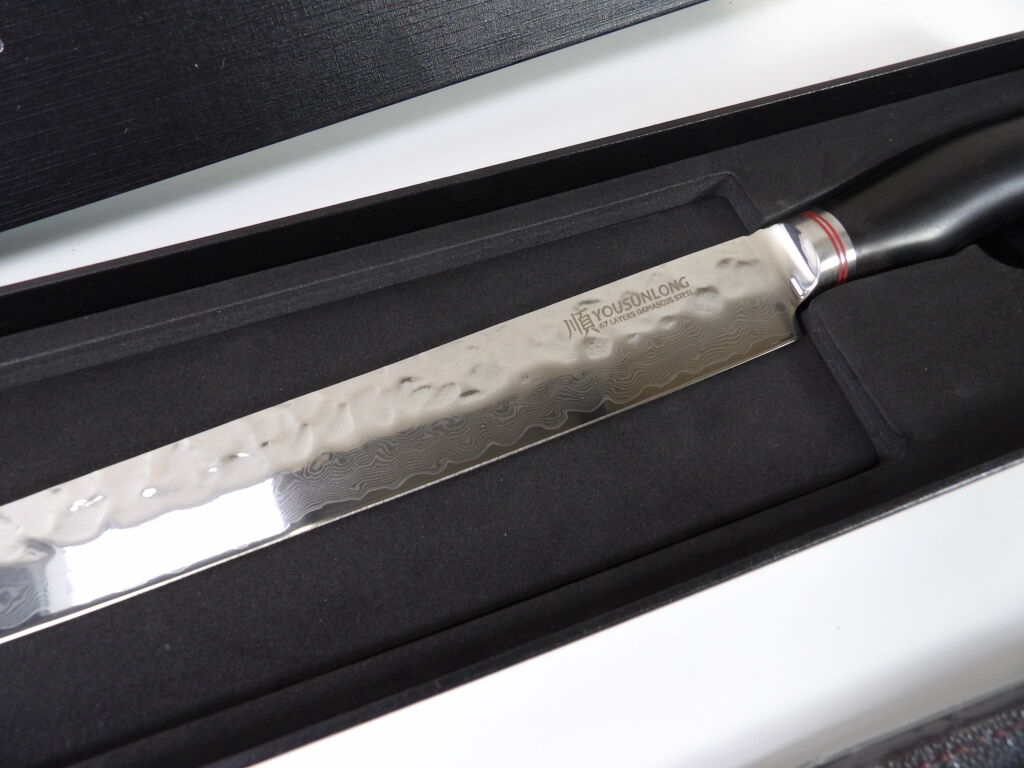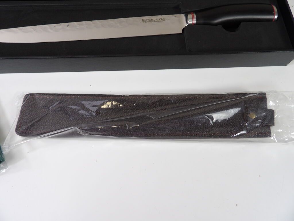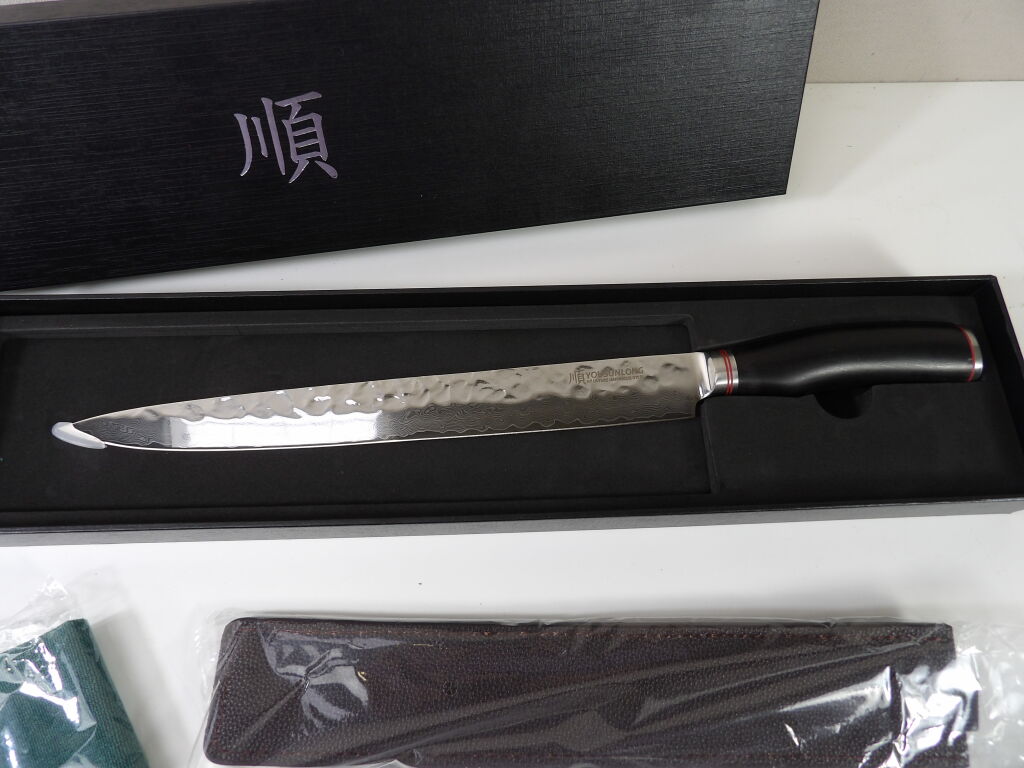YOUSUNLONG - Couteau de chef en acier damas 67 couches à découper japonais. Ultra tranchant, avec son étui et sa chiffonnette. Longueur totale env. 44CM. Neuf