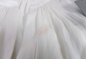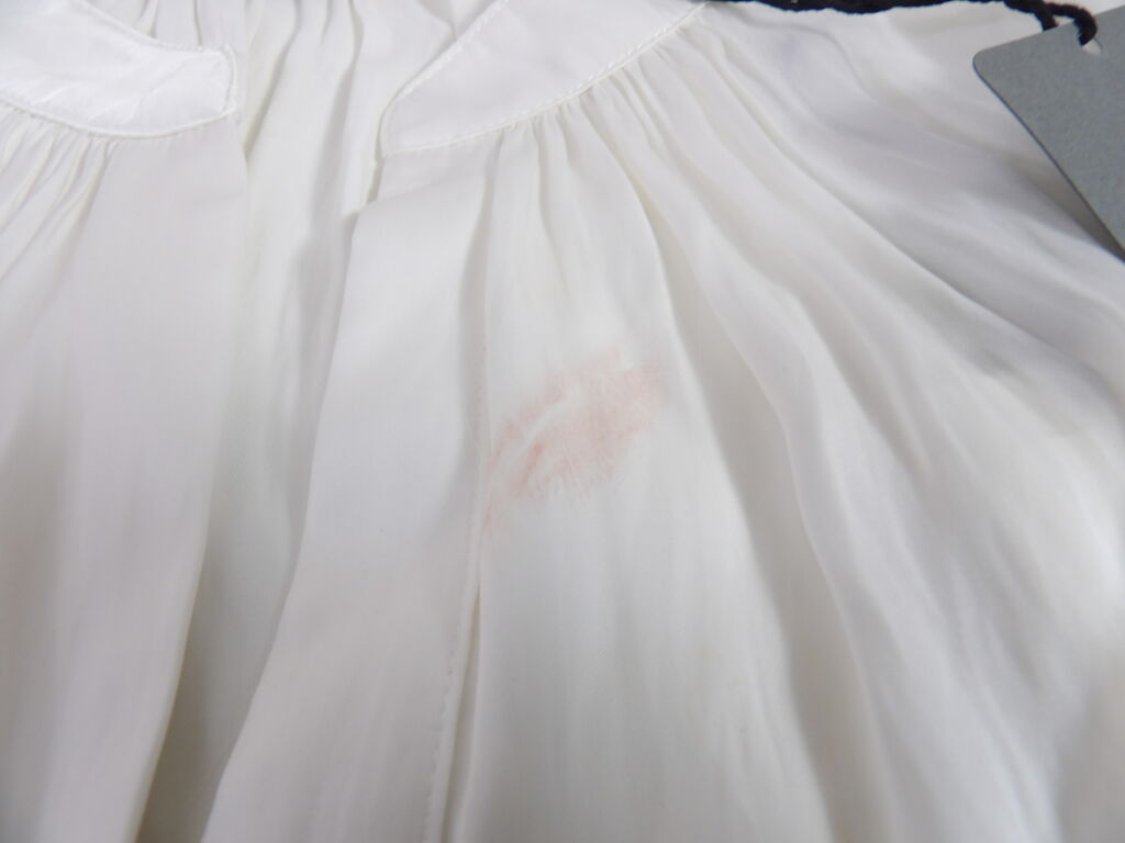 - Chemise en satin coloris écru - à noter une tâche de rouge à lèvres