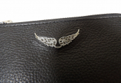 - Porte-monnaie / Porte-cartes en cuir grainé noir - aile argentée - valeur: 125 euros