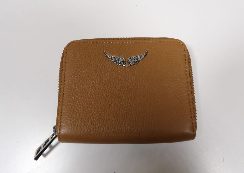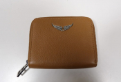 - Porte-monnaie / Porte-cartes en cuir grainé camel - aile argentée - valeur: 95 euros