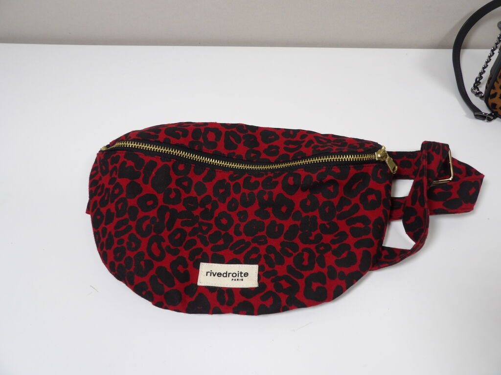 - Banane en toile rouge imprimé léopard - bon état - 30 x 15 cm