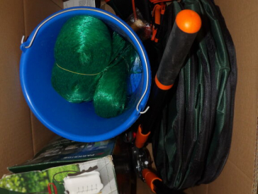 LOT ENTRETIEN EXTERIEUR NEUF + 25 pieces : Bac de dechet - Coupe branche - Secateur - Pulverisateur - Seau - GARDENIA etc...