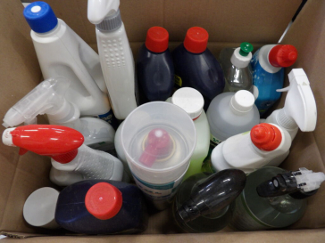 Carton de x18 produits ménagers : CIF, Vaisselle Main, WC Net, Vinaigre, Ouragan Déboucheur, anti punaises...