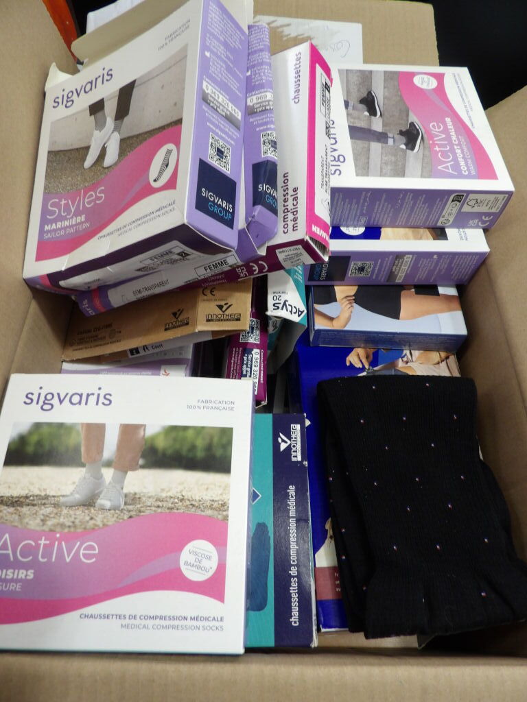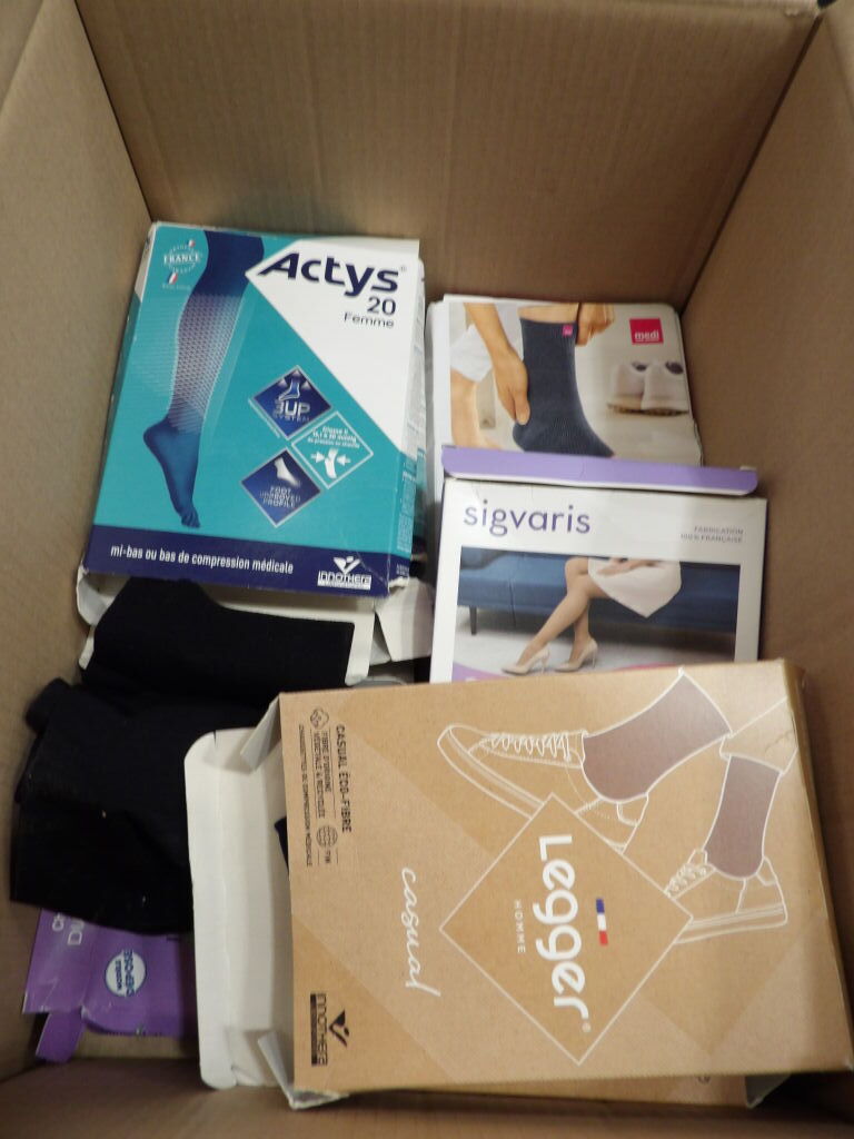 BAS DE CONTENTION et autres NEUF (certains emballages très abimés) : Lot de 30 PACKS et autres Différentes marques, modèles et tailles.