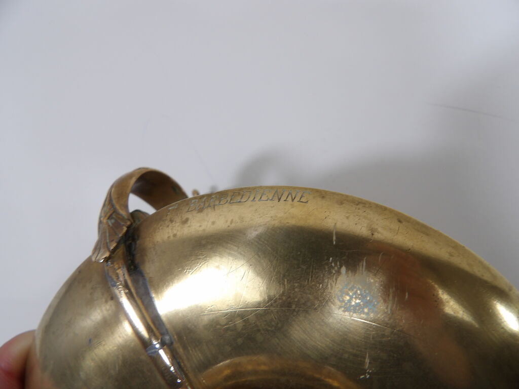 Bougeoir à main en métal doré signé de la maison Barbedienne.