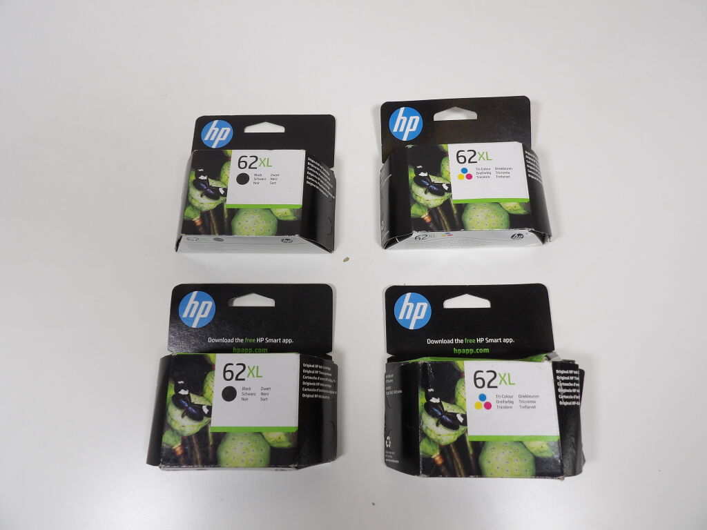 Bureautique - Lot de 4 articles: Cartouches Encre XL 2x noir + 2x tricolore HP réf: 62