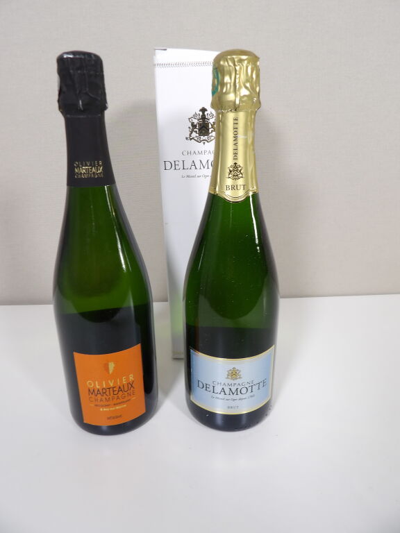 Champagne : 2 bouteilles dont Champagne Delamotte Brut et Olivier Marteaux Réserve.