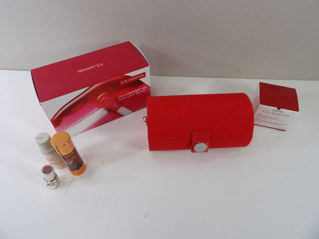 CLARINS : Petit coffret (mini sac rouge) de x5 Huiles lèvres de 1,4ML - Idéal comme cadeau de noël ! Avec x1 Crème lift redensifiante anti rides 50ML, et x3 petits échantillons.