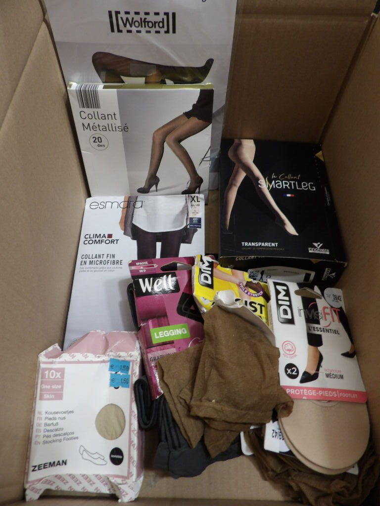 COLLANTS, MI-BAS collants et autres NEUF (certains emballages très abimés) : Lot d"une soixantaine de PACKS et autres Différentes marques, modèles et tailles. Surtout DIM.