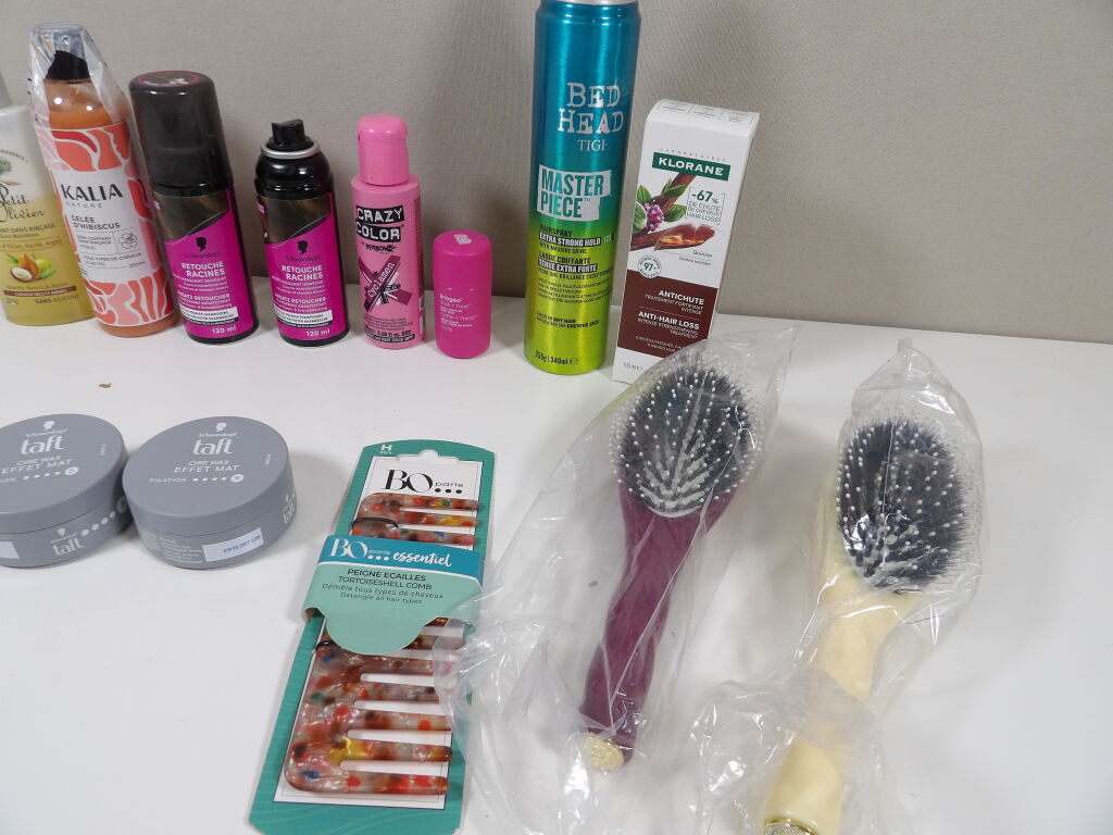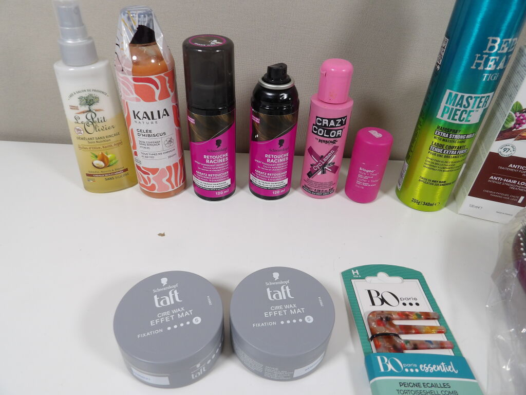 COSMETIQUE CHEVEUX 13 PCS : Produits coiffant / Cire - Laque - Démêlant - Brosse etc... Neuf et Occasion