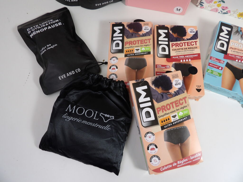 CULOTTES MENSTRUELLES et autres NEUF : Lot de 12. Différentes marques, modèles et tailles.
