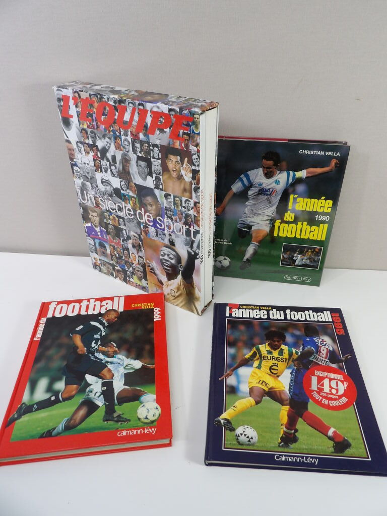 FOOTBALL et sport : Lot de x4 Livres d'occasion : L'année du football 1990 + 1999 + 1995 et L'Equipe Un siècle de sport.
