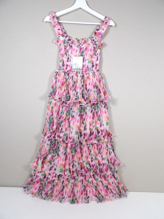 GANNI - Robe à bretelles et volants imprimé floral - Neuf avec étiquette - Taille 34