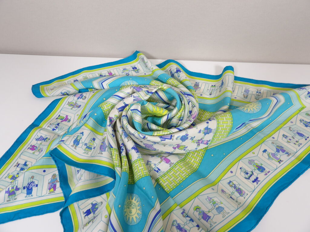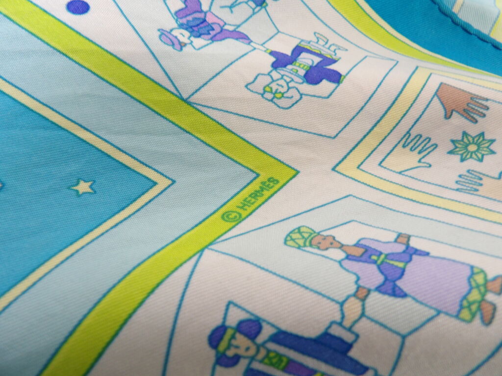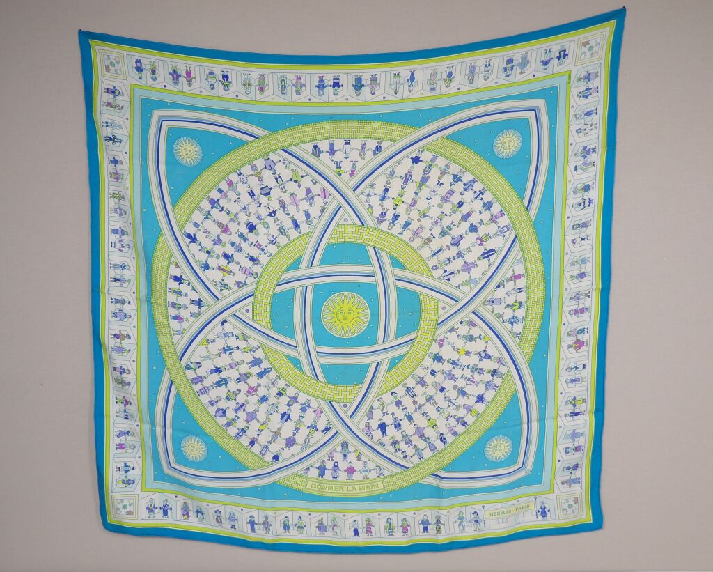 HERMES - Carré en soie modèle Donner la Main - Occasion bon état quelques tâches - prévoir nettoyage