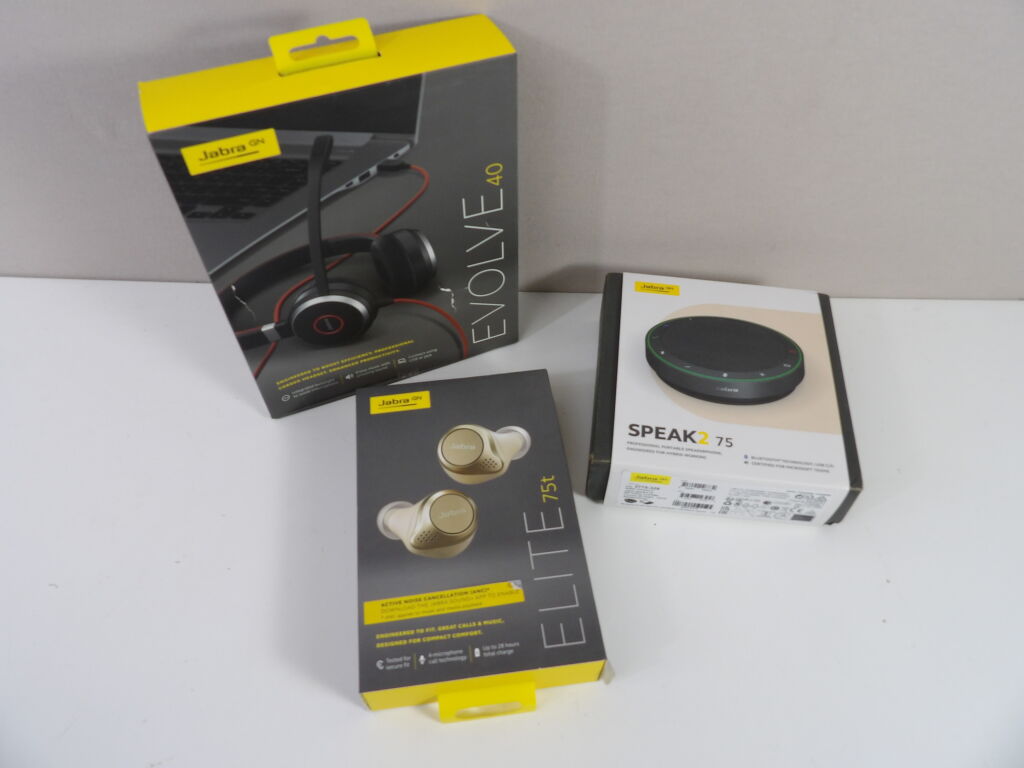 JABRA Lot de x3 articles neufs et d'occasion : ELITE 75t, Speak 2 75 et EVOLVE 40.