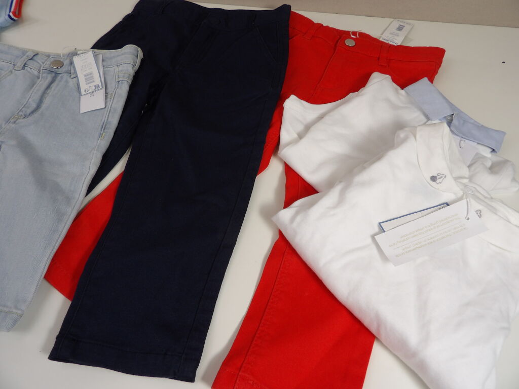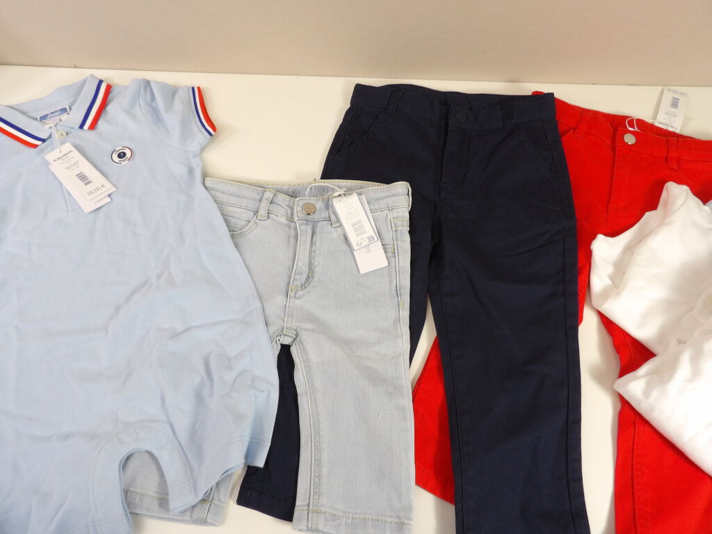 JACADI Paris Lot de x6 articles NEUFS avec étiquettes : x2 Pantalons 24M, x1 Combi short polo 36M, x1 Jeans 6M, et x2 bodies manches longues en 6M + 12M.