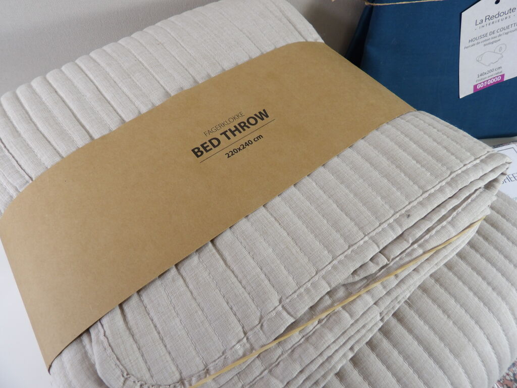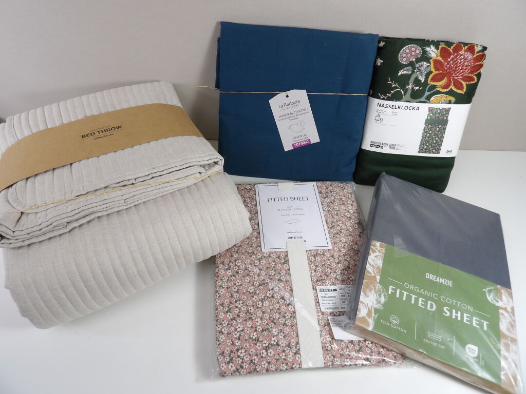LINGE DE MAISON x5 articles neufs : Couvre lit beige 220x240CM, Une housse et oreiller 140x200 / 80x80cm Nasselklocka Ikea, x1 drap housse H&M Home fleuri 90x200cm, x1 drap Dreamzie et x1 Housse de couette 140x200 La Redoute.