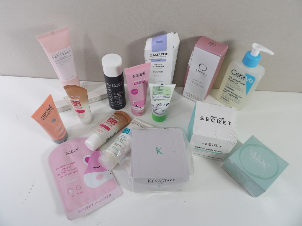 Lot de +15 cosmétiques et maquillage divers, neufs et occasion : Maybelline, Yves Rocher, Kerastase, ALOE, Pin up secret, CeraVe ....