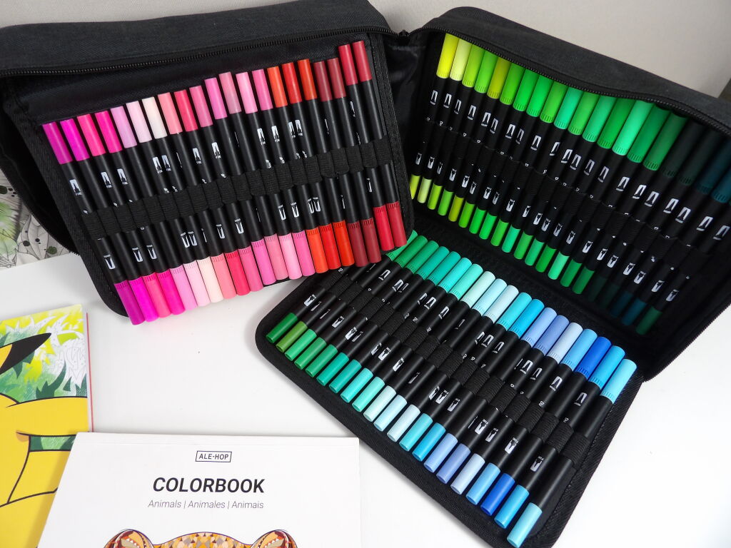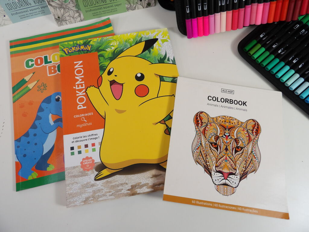 Lot de cahiers de coloriage et trousse de feutres - neuf et occasion.