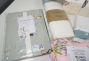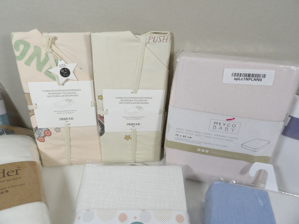 Lot de x12 articles neufs : draps, taie d'oreiller, gigoteuse, draps housse...