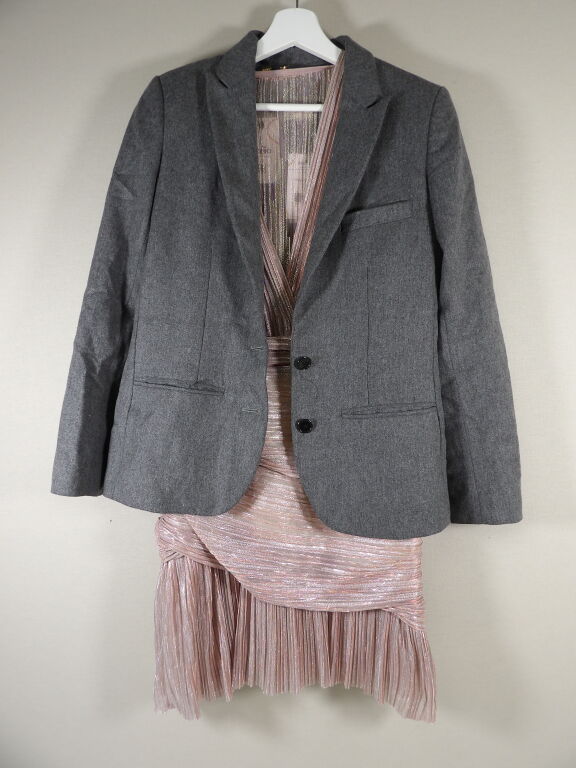 Lot de x2 articles de seconde main en taille M / 38 (d'occasion bon état) : Robe brillante MAJE et Blazer gris SOEUR.