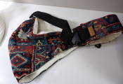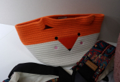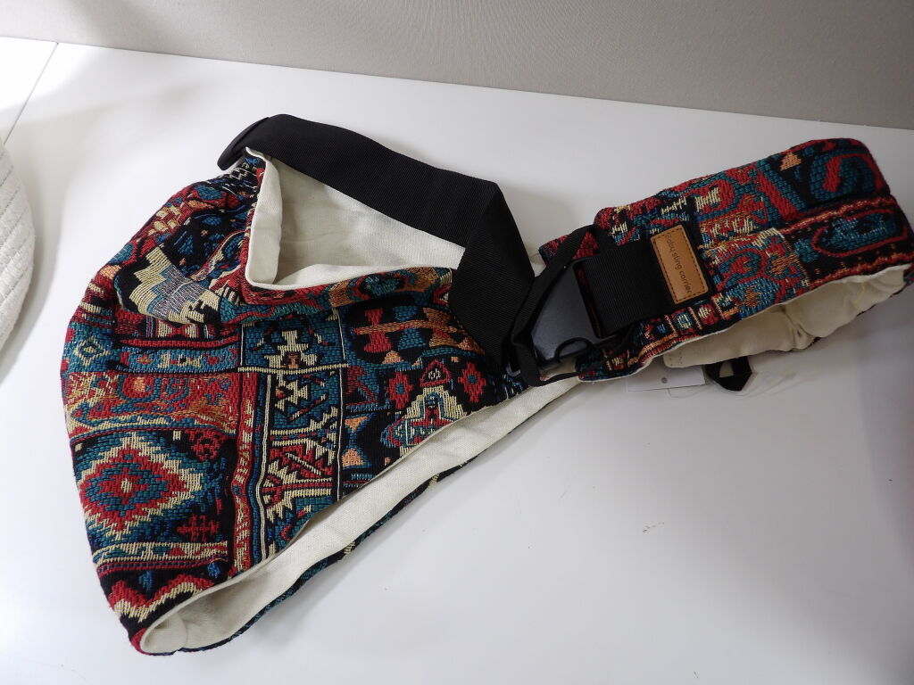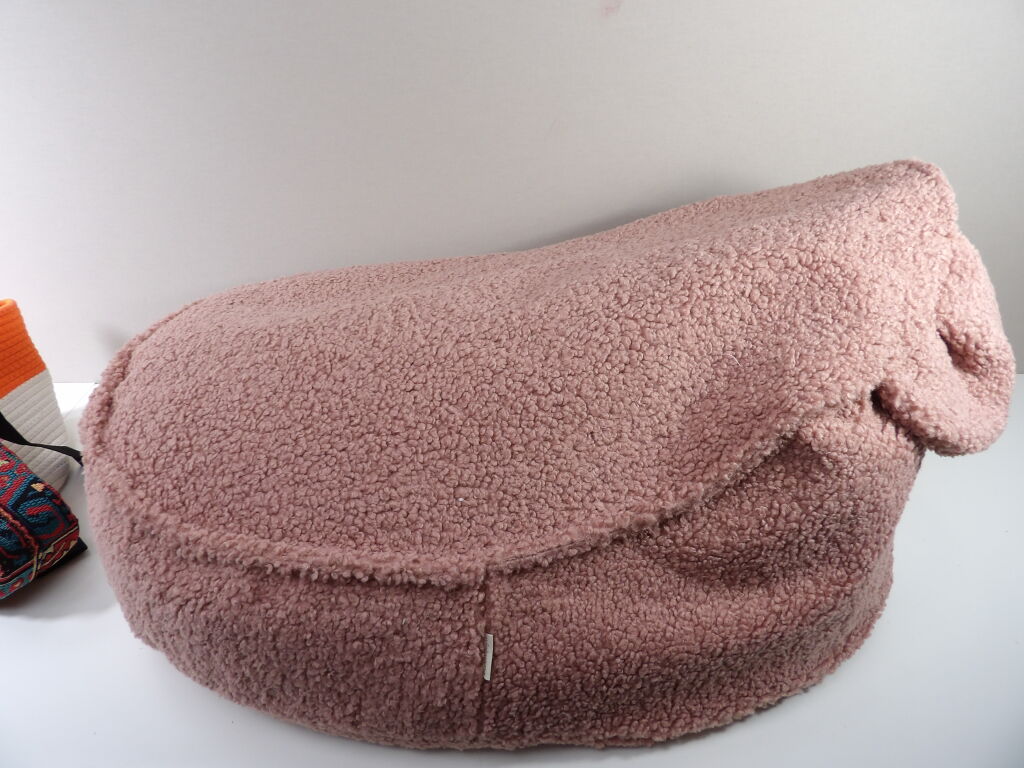Lot de x3 articles neuf et occasion : Pouf Bear rose WIGAWAMA, Un porte bébé pour la hanche, et un petit panier renard.