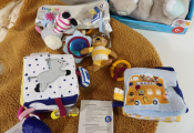Lot de x4 doudous et petits jouets pour BÉBÉ neufs : dont Ma loutre calins bonne nuit; et on y inclut un NID D'ANGE neuf de la marque SAUTHON en 0-6 mois.