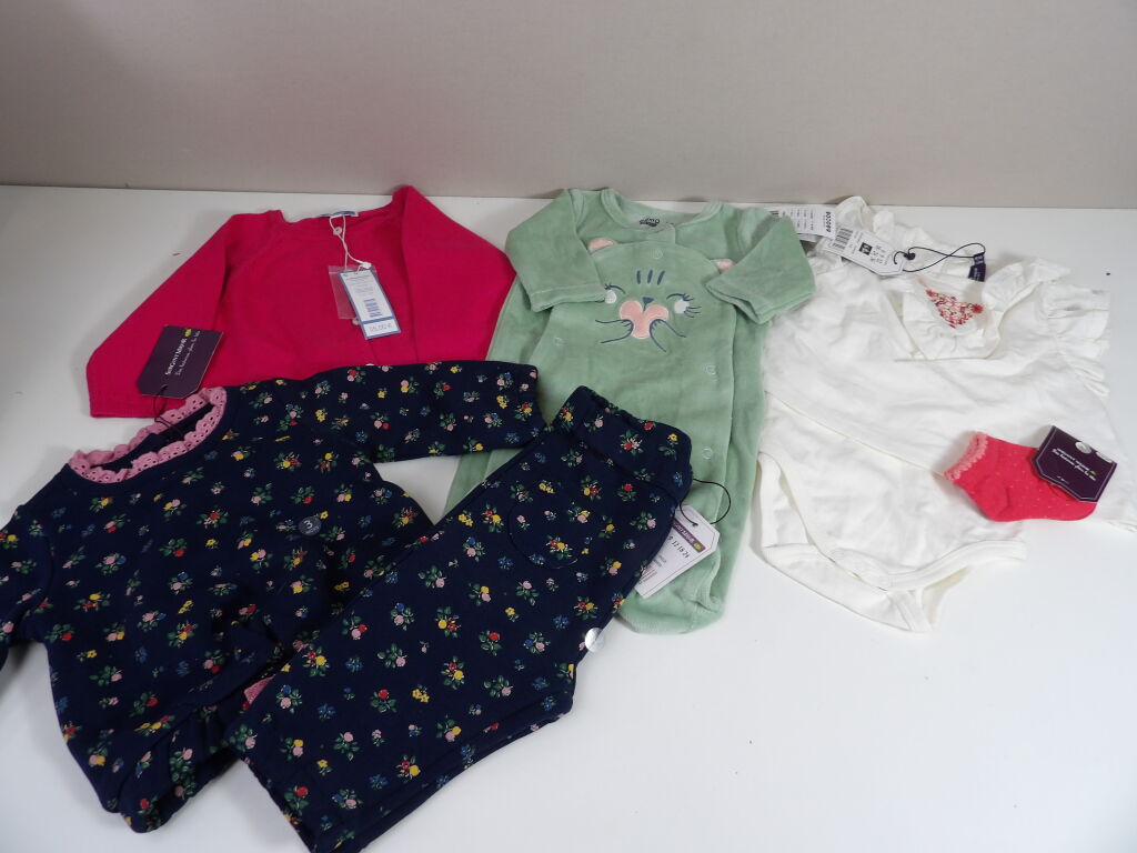 Lot de x5 vêtements BÉBÉS - NEUFS : JACADI, SERGENT MAJOR, et GEMO (0 / 3 / 6 MOIS).