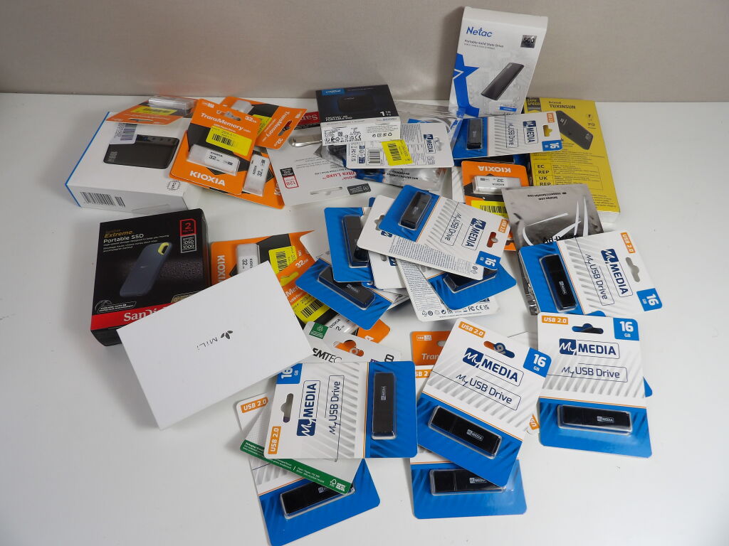 Lot d'une trentaine d'accessoires pour l'informatique dont beaucoup de clés USB.