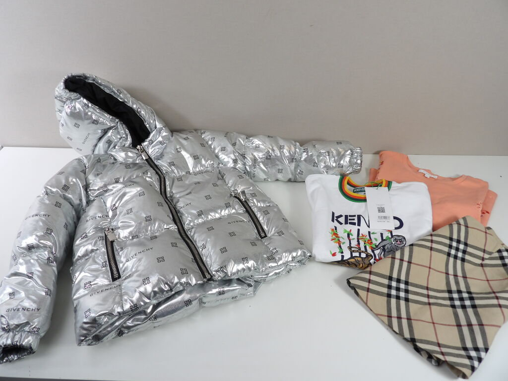 LUXE ENFANT x4 articles d'occasion et neuf : Jupe BURBERRY, TShirt KENZO T5A (neuf), Tshirt CHLOE 12A et doudoune GIVENCHY T6A.