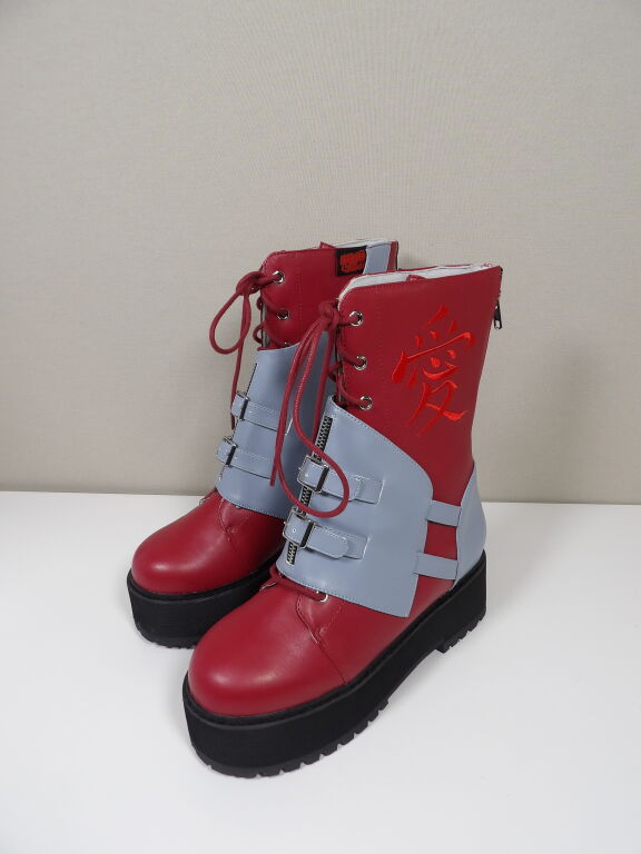 - YRU SHoes - Boots montantes lacées en simili cuir rouge et gris - Taille 9 (41?) - Neuf avec boîte abîmée