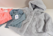 MAYORAL Lot de x3 articles : Gilet avec col fausse fourrure neuf Taille 3 (98CM); Robe neuve corail Taille 8 (128CM) et Blouson fausse fourrure grise d'occasion bon état en Taille 6 (116CM).