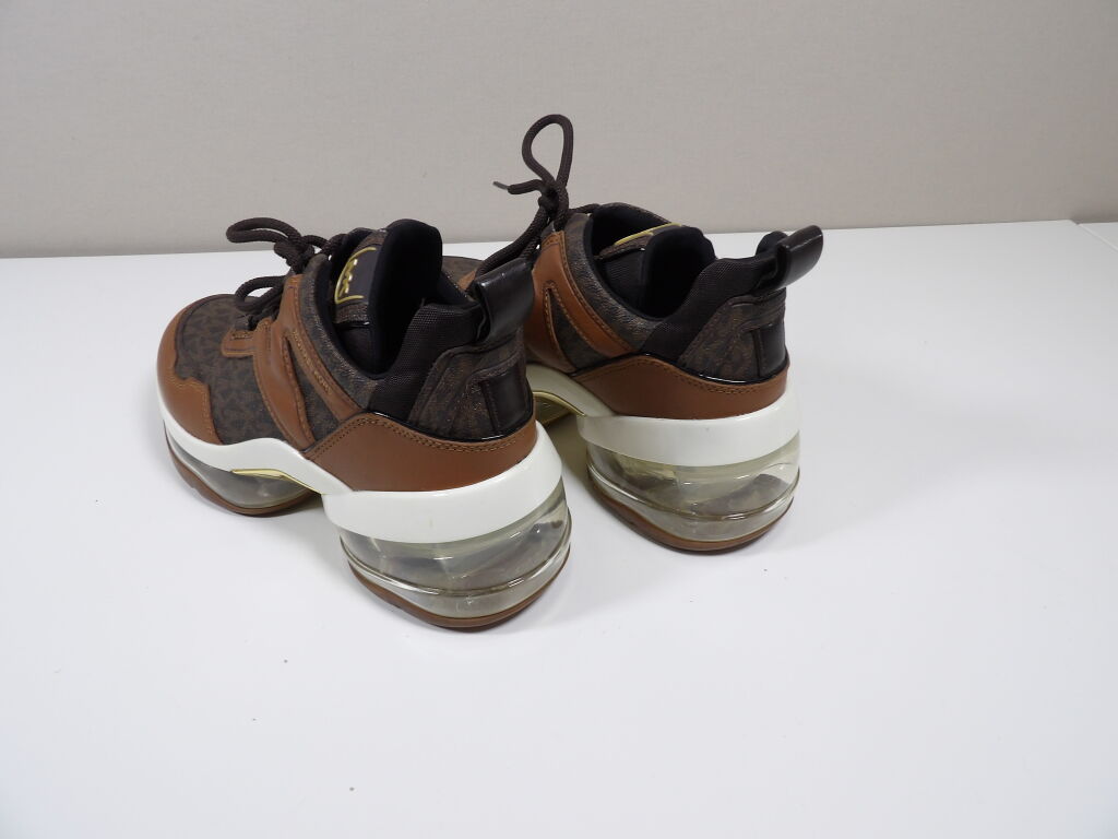 MICHAEL KORS - Sneakers en toile monogramme et cuir camel /marron - Taille: 8.5 (38.5) - Ocassion en tèrs bon état (pas ou peu portées)